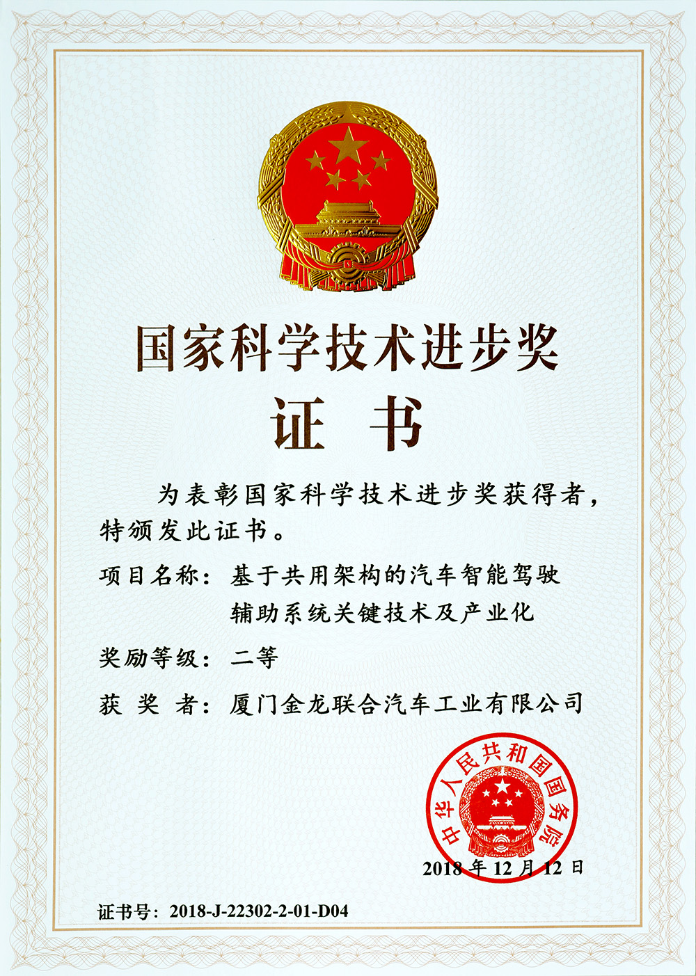 2018國家科技進(jìn)步獎(二等獎)基于共用架構(gòu)的汽車智能駕駛輔助系統(tǒng)關(guān)鍵技術(shù)及產(chǎn)業(yè)化
