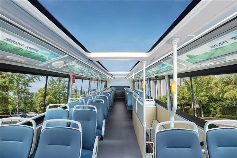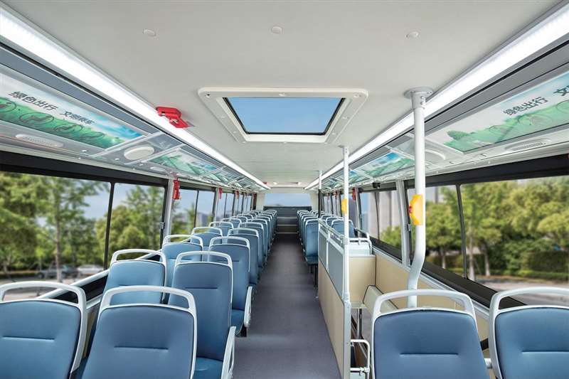 XMQ6108SGBEVL 純電動雙層公交車基于整車底盤結(jié)構(gòu)的優(yōu)化設(shè)計,有效擴(kuò)容車內(nèi)承載空間,10.5米車身即可達(dá)成 62+1的座椅布局,乘客核載人數(shù)比肩 12米同類車型。猶如坐居高層的移 動觀景席,二層貫穿式全景天窗(選裝),360度盡覽城市美景。
