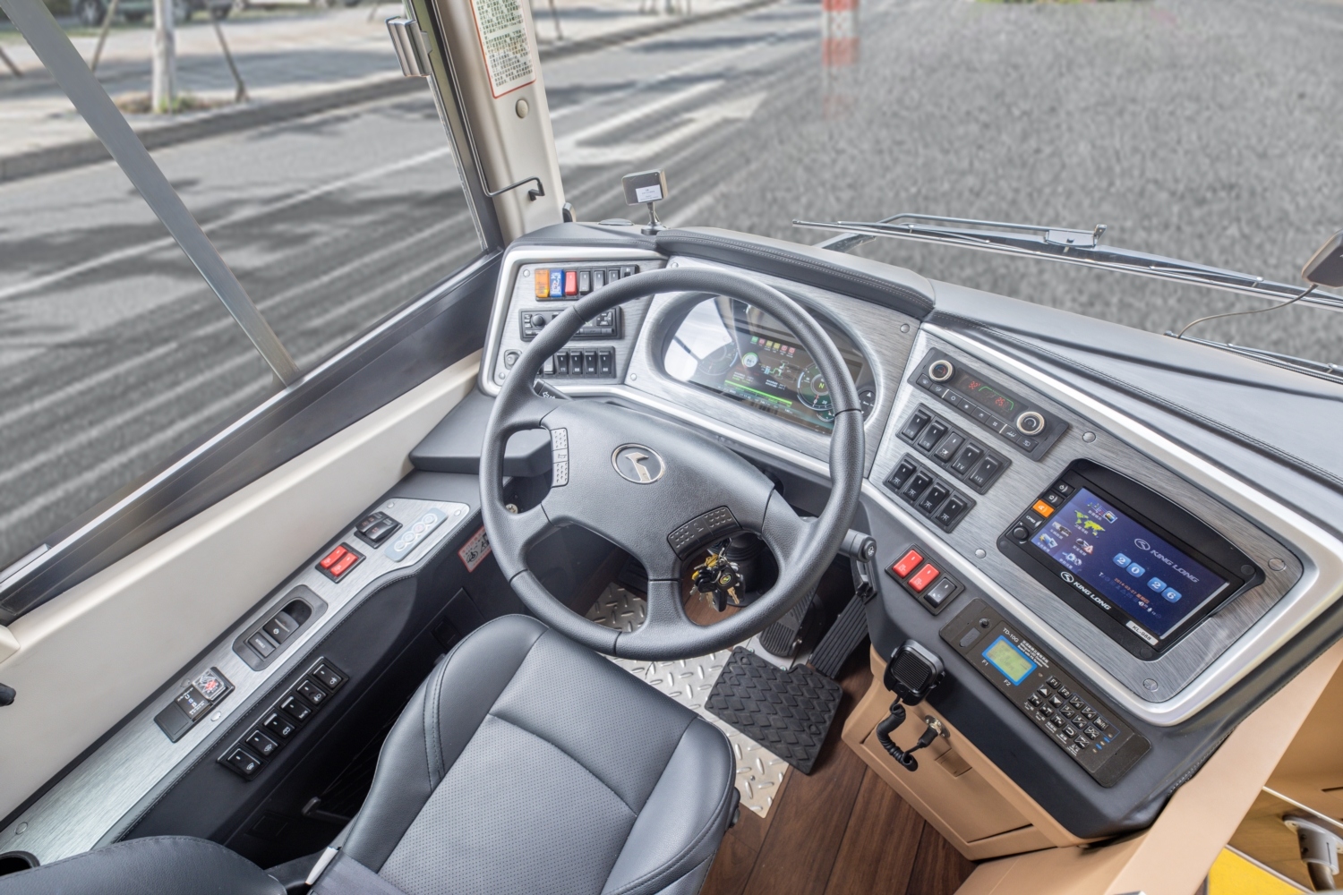 XMQ6108SGBEVL 純電動雙層公交車搭載全新升級的儀表臺,精心布置車內(nèi)各項控制功能按鍵,契合一臂化操作的人機(jī)工程設(shè)計。電動除霜后視鏡(選裝)和免干擾防護(hù)的獨(dú)立駕駛艙等貼心配置,讓司機(jī)輕松掌控,駕馭全程。