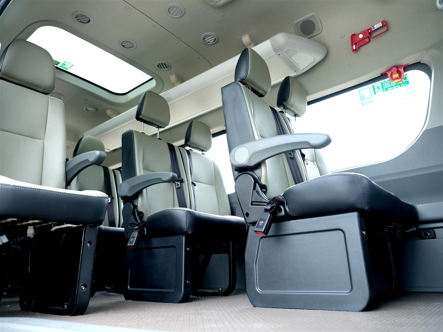 內(nèi)部空間寬闊,可安裝10-17座多形態(tài)仿皮座椅,人機(jī)工程學(xué)設(shè)計(jì)座椅,符合人體曲線,乘坐舒適,立體全包裹內(nèi)飾,美觀又彰顯品質(zhì),中門組合踏步,輕松上下車,為乘客營造禮遇氛圍。
