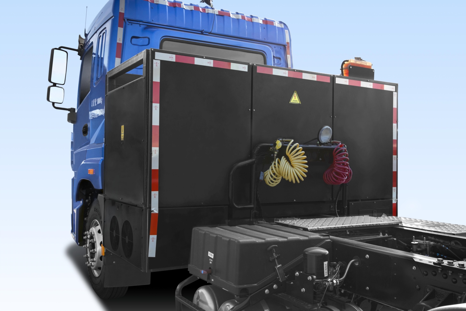 改傳統(tǒng)充電模式為快捷換電模式,節(jié)省90%以上充電時(shí)間,可充可換,靈活便利,可實(shí)現(xiàn)5分鐘快速換電。針對(duì)港口場(chǎng)景,采用馬鞍型后背電池包設(shè)計(jì),降低電池高度,使后窗露出,拓寬視野,可直接觀察集裝箱裝卸操作,提高了便利性和安全性。