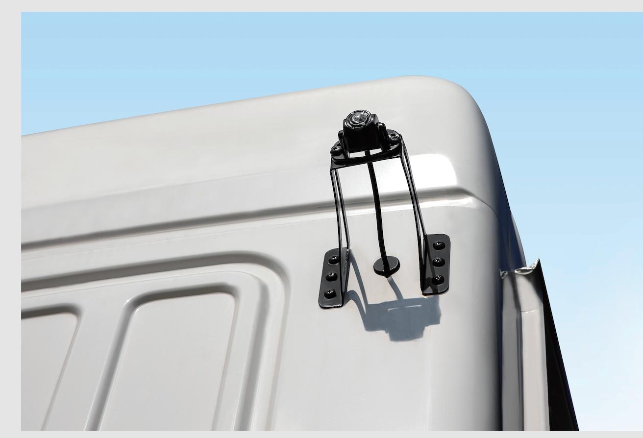 上裝與底盤連接采用止推板和拉馬結(jié)合方式,降低應(yīng)力的同時(shí)有效提高車架壽命;從承載要求、節(jié)能穩(wěn)定出發(fā),加強(qiáng)上裝和車身結(jié)構(gòu)的匹配設(shè)計(jì),提高整車穩(wěn)定性,減少側(cè)翻率。