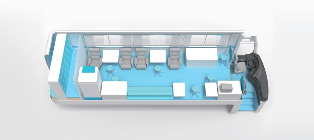 9米小中巴客車平臺,車內(nèi)空間安排有序,搭載市電空調(diào),配備2個采血位和4個采血椅,配有微波爐、食品冰箱、飲水機等生活設施,設有應急休息床,可最大限度保障獻血者的舒適度和人身安全。
