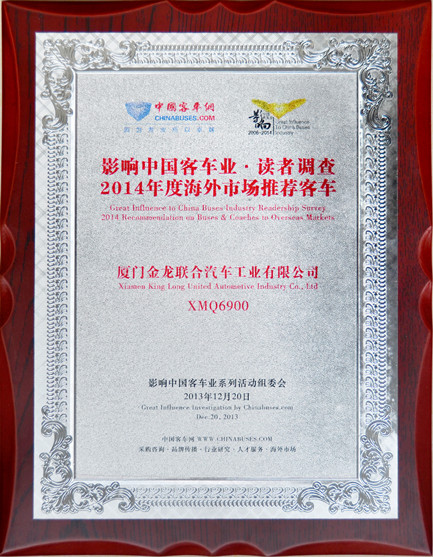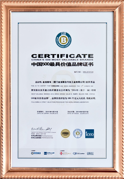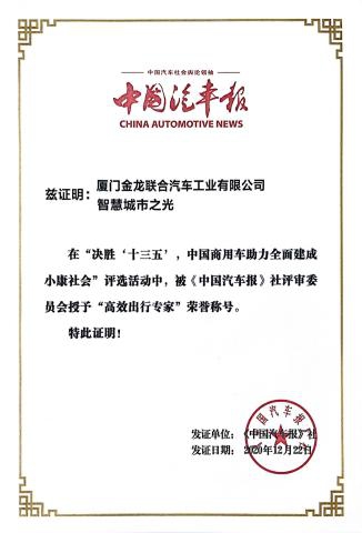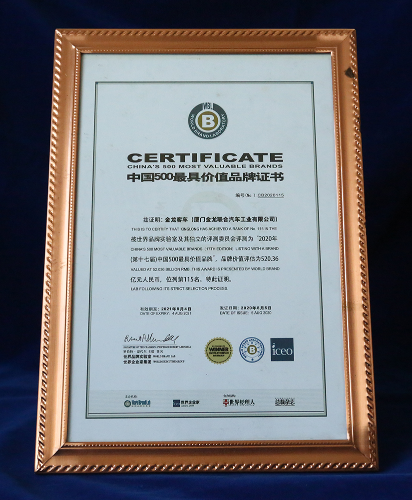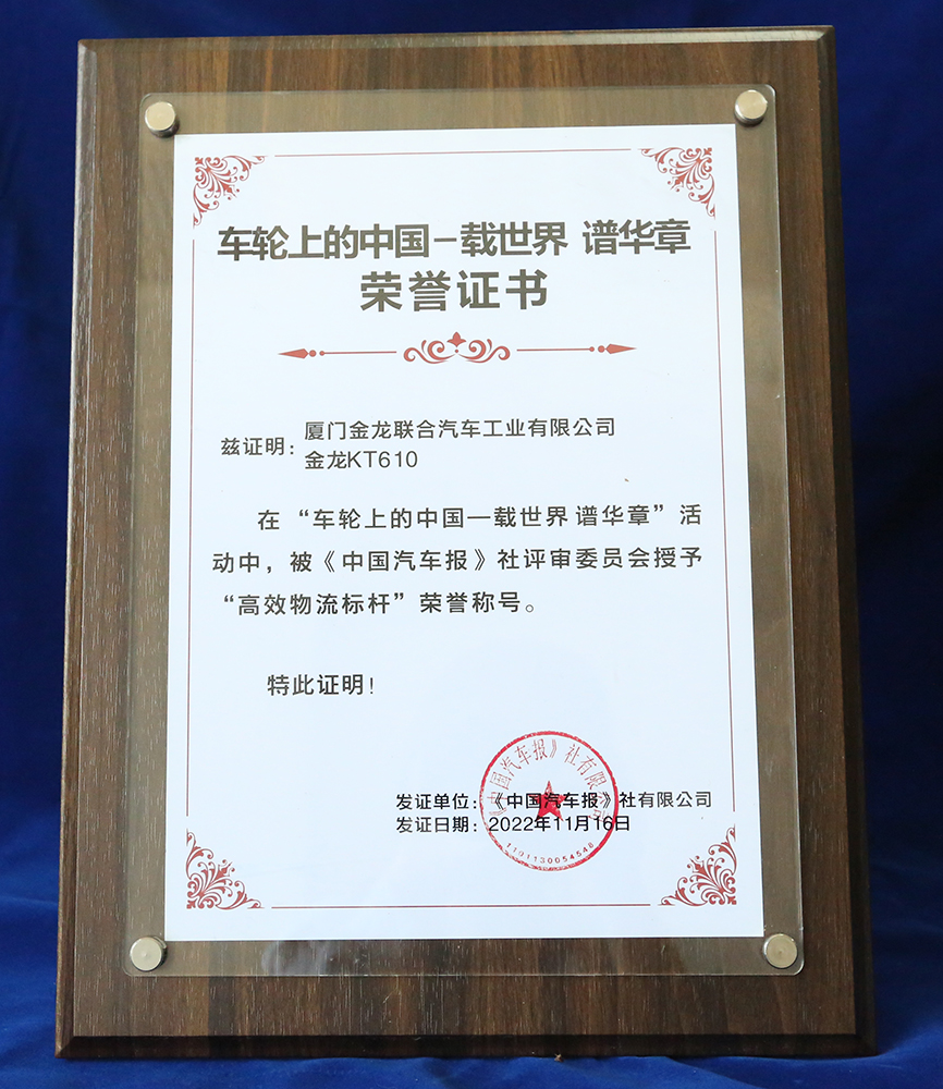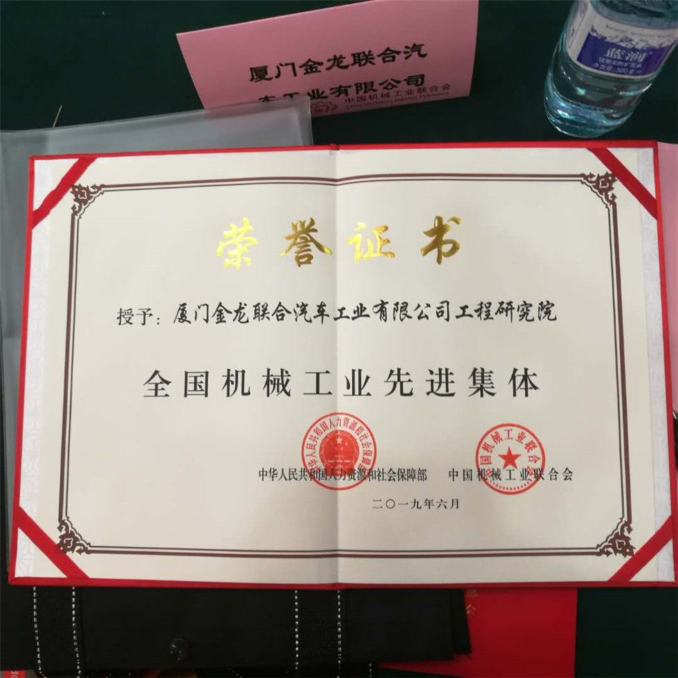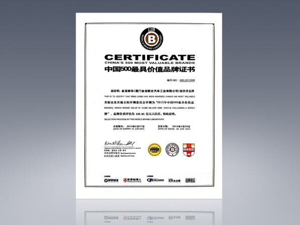 2017-中國客車工業(yè)60周年榮譽證書-十大公路-旅游客車-XMQ6129Y