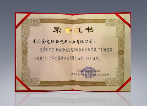2011-廈門市優(yōu)秀新產(chǎn)品二等獎——清潔能源系列客車