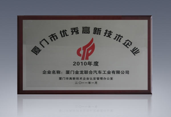 2011-廈門市優(yōu)秀新產(chǎn)品獎一等獎——XMQ6127J